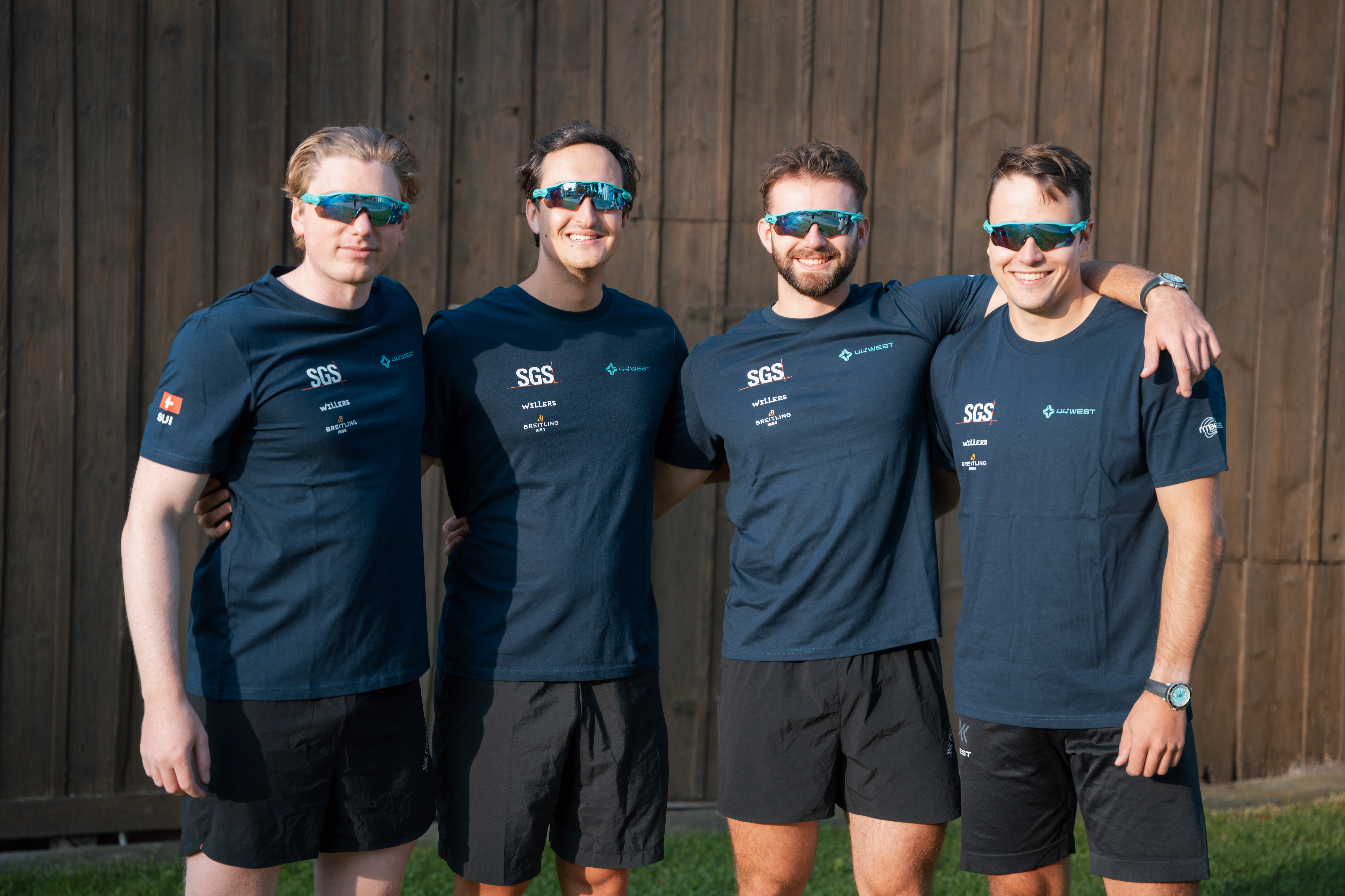 Die Ruderer von 44west in einem Vierer-Ruderboot auf dem Zugersee.